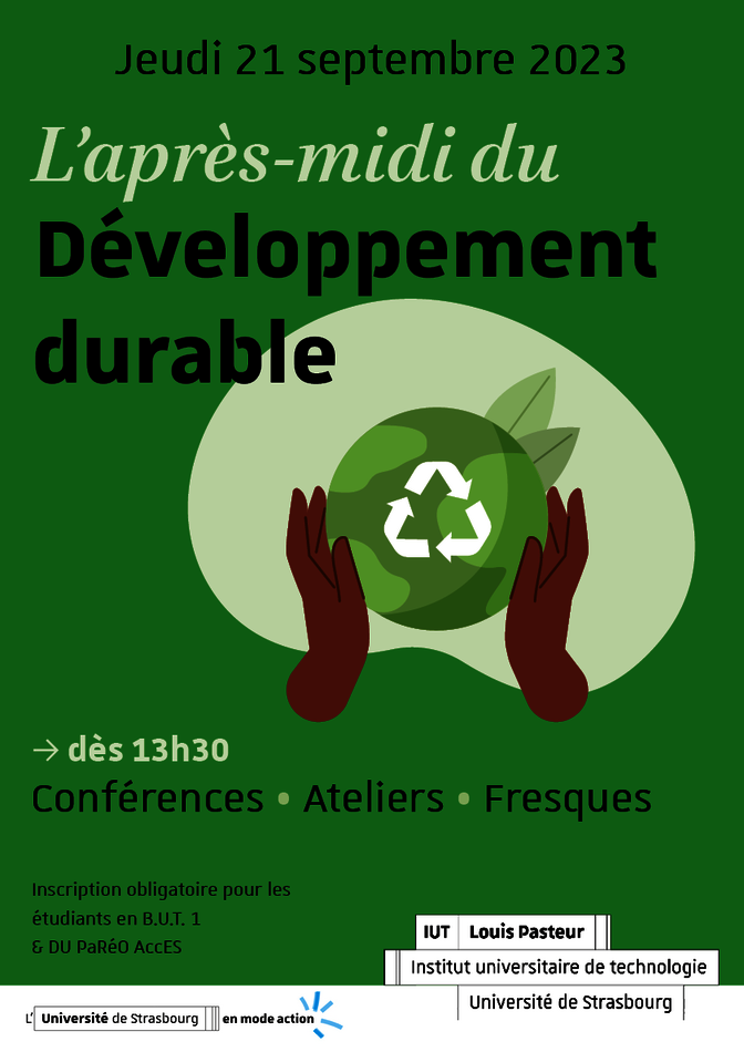 Jeudi dernier (21 septembre 2023), l'ensemble des étudiants de première année de B.U.T. (400 étudiants) ont participé à une après-midi dédiée à la thématique du développement durable.
